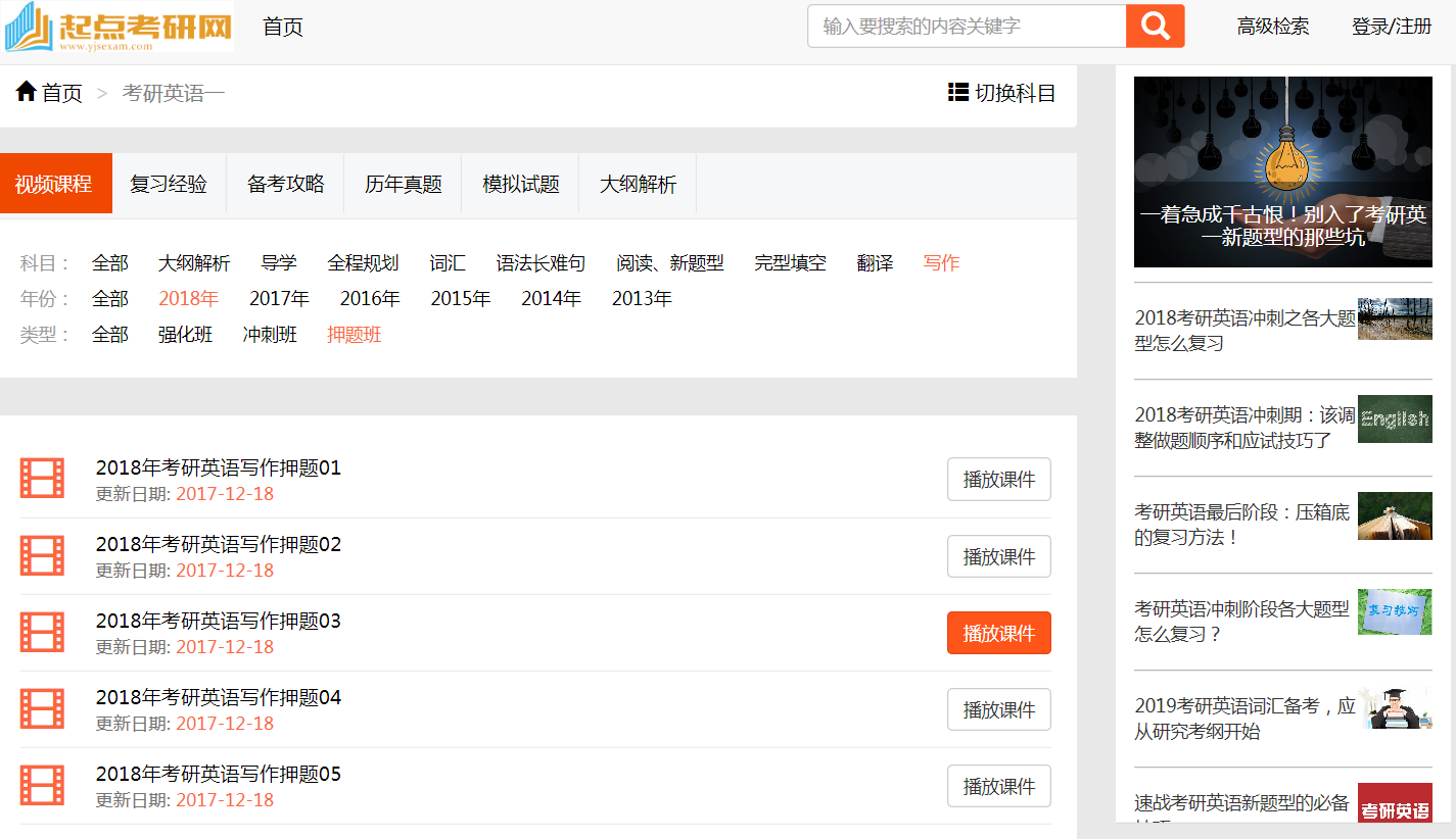 图书馆为我校考研学生开通2018考研视频辅导课程,所有学生可以免费学习!冲刺班、押题班课程已经更新上线。