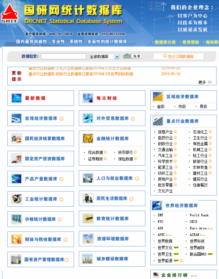 《国研网》由国务院发展研究中心信息中心主办,是中国著名的大型经济类专业网站,是面向领导者、投资者和学者提供经济决策支持的权威信息平台。该库以国务院发展研究中心丰富的信息资源和强大的专家阵容为依托,并与海内外众多著名的经济研究机构和经济资讯提供商紧密合作,全面整合中国宏观经济、金融研究和行业经济领域的专家学者以及研究成果。旨在为用户提供高端的管理决策和教学研究参考信息。我校订购该库的主要内容有国研视点、宏观经济、金融中国、行业经济、世界经济与金融评论、高校管理决策、宏观经济数据库、金融统计数据库(包括综合数据、货币银行、证券期货、保险数据)、宏观专题数据库(对外经济贸易数据库、产品产量数据库、工业统计数据库)、重点行业数据库之信息产业库。