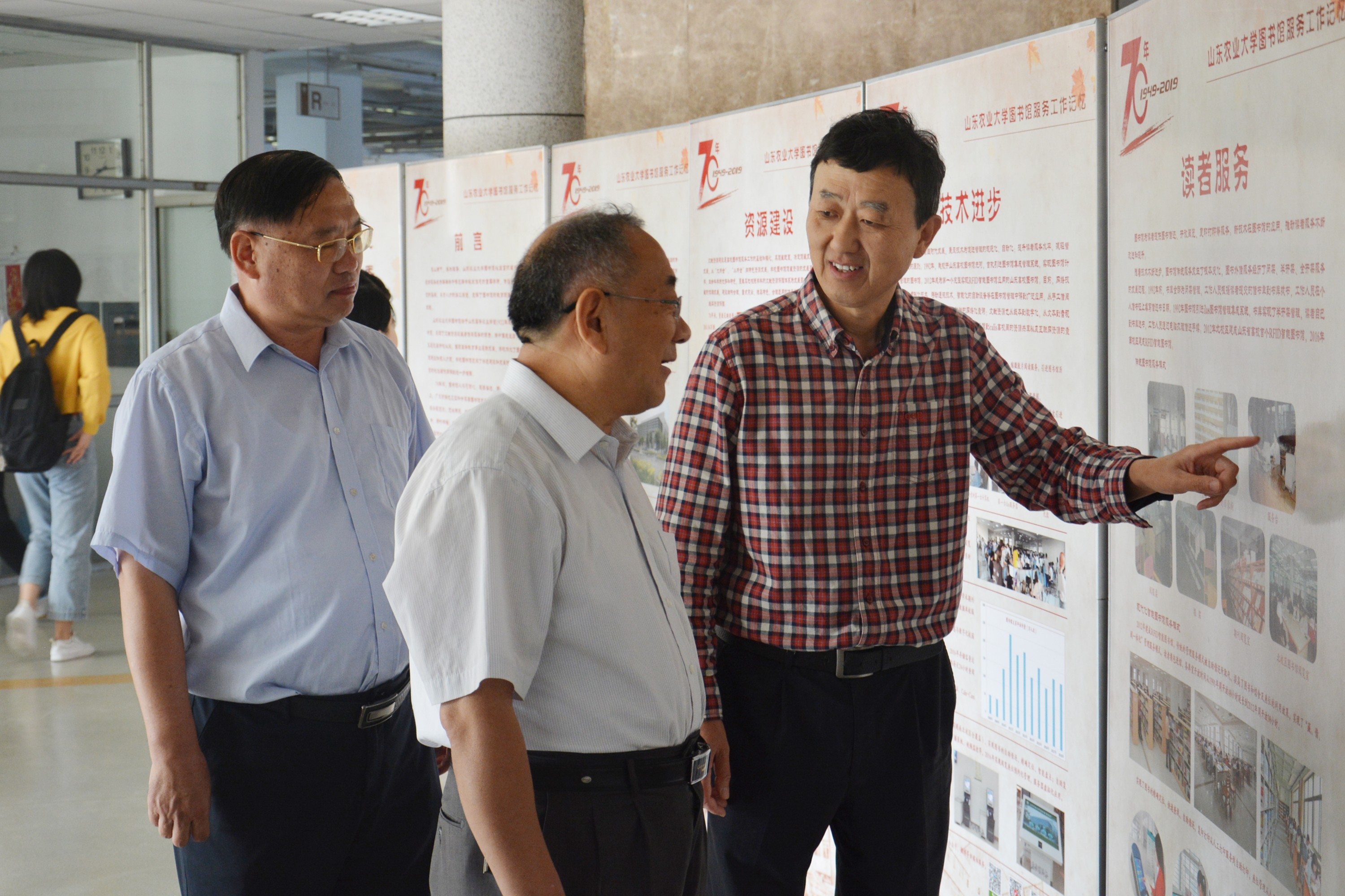 在馆领导班子的陪同下,王振林副校长参观了正在进行的图书馆“读者服务工作70年记忆”展览,对图书馆自新中国成立后,尤其是改革开放以来,在资源建设、技术应用、读者服务、阅读推广、教育培训、参考咨询、学科服务、社科普及等方面取得的巨大进步感到高兴和欣慰,希望图书馆人再接再厉,为学校人才培养和教学科研提供更好的支持和服务。