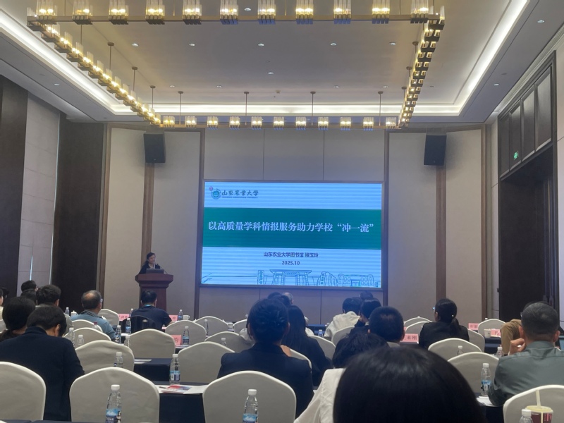 在图书情报与农业科技期刊平行会场,共有21位专家学者分享了学术报告。我校图书馆副馆长接玉玲受邀作题为《以高质量学科情报服务助力学校“冲一流”》的学术报告。重点从学校“冲一流”专题情报、学科发展情报、知识产权情报和党政管理情报等四个维度,介绍山东农业大学图书馆学科情报分析团队开展的工作和取得成效。