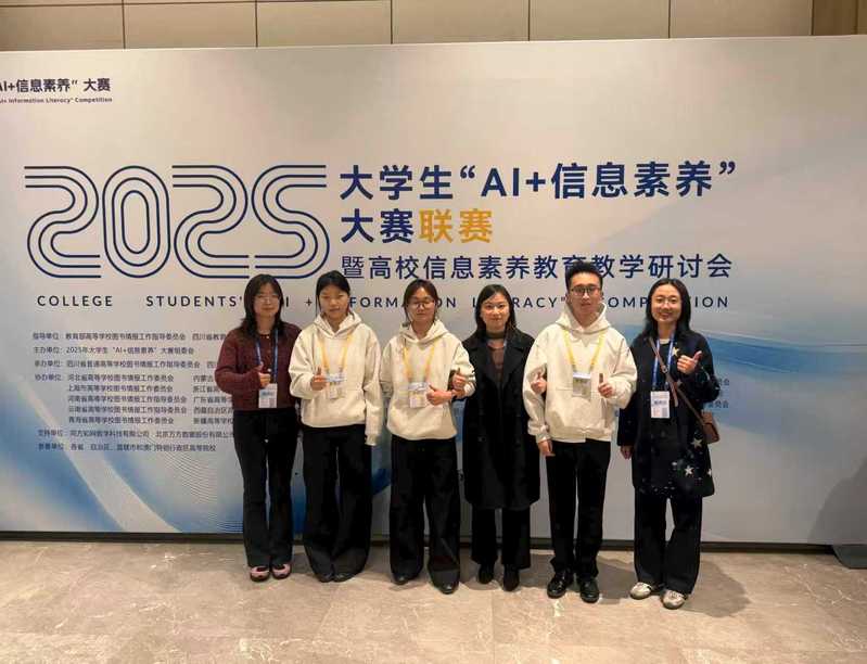 11月27日至28日,2025年大学生“AI+信息素养”大赛联赛暨高校信息素养教育教学研讨会在成都举行。我校三名学子组建的“智多星队”,从全国31个省(自治区、直辖市及澳门特别行政区)1355所高校的35.91万名参赛者中脱颖而出,历经个人接力、团队抢答、AI专项等多轮激烈角逐,获本科生组全国三等奖。图书馆两位老师精心组织备赛,全程跟进,为队员提供系统性、针对性的支持与辅导,获“优秀指导教师奖”。